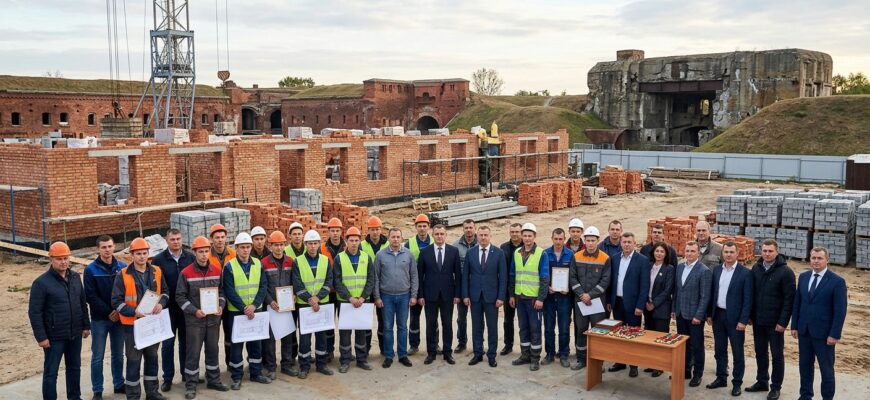 Итоги областного конкурса профессионального мастерства по профессии «Каменщик» подвели на территории мемориального комплекса «Брестская крепость — герой». Мероприятие состоялось на строительной площадке будущих общежитий для воспитанников Республиканского центра патриотического воспитания молодежи, возводимого на Кобринском укреплении крепости.