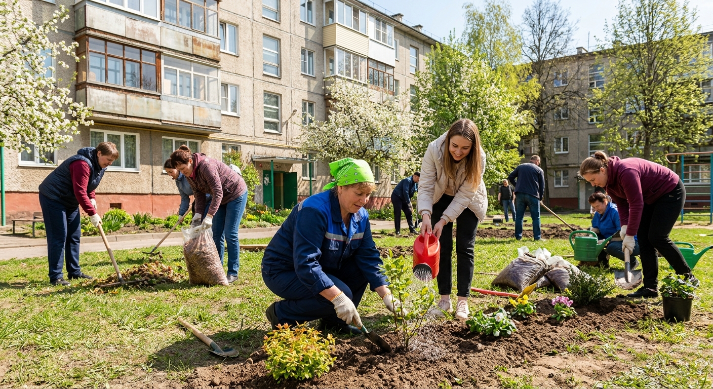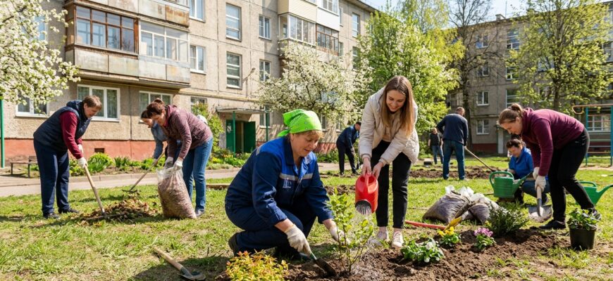 Подобные общественные мероприятия по наведению порядка и озеленению регулярно проходят в различных регионах. Они направлены на улучшение городской среды и воспитание бережного отношения к общественным пространствам. Участие в них представителей разных поколений и социальных групп способствует укреплению邻里ских связей.
