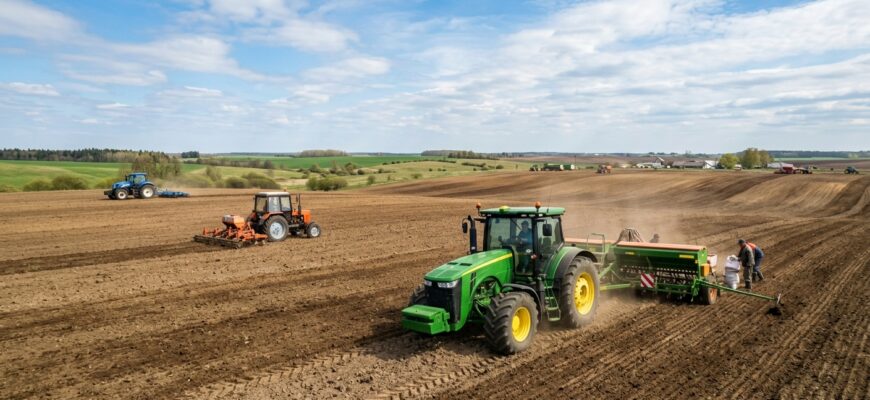 Весенний полевой сезон требует выполнения ряда агротехнических операций в сжатые сроки. От качества этих работ зависит будущий урожай. Механизаторы нескольких сельскохозяйственных предприятий Брагинского района завершили ключевые этапы подготовки к севу и уходу за посевами. Специалисты показали высокие показатели производительности на разных видах техники.