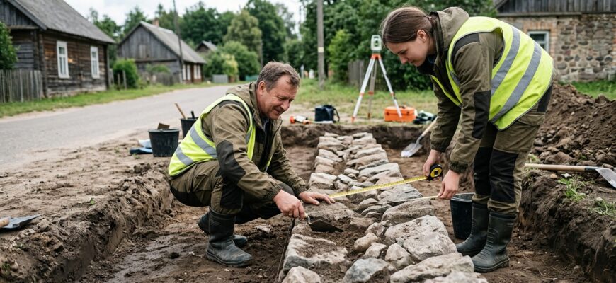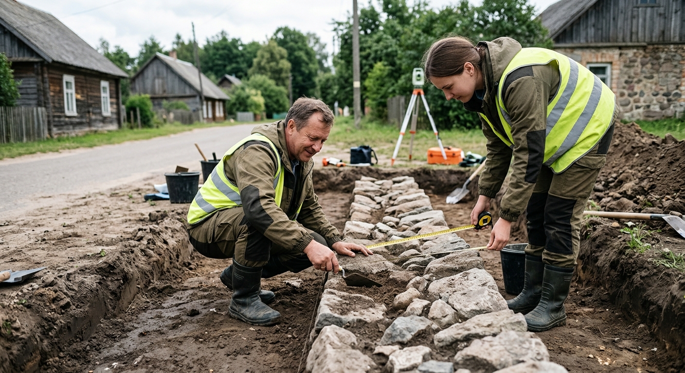 Работы проводятся в связи с реставрацией памятника архитектуры XVIII века — барочной синагоги. В конце 2025 года на этом же участке был обнаружен фундамент неизвестного здания. Позднее археологи идентифицировали его как остатки малой синагоги (кляйне шуль), возведенной в 80-х годах XVIII века. После завершения реставрации в здании основной синагоги планируется создать музейную экспозицию, посвященную истории местной еврейской общины. Археологический надзор за земляными работами является обязательной частью реставрационного процесса на объектах культурного наследия.