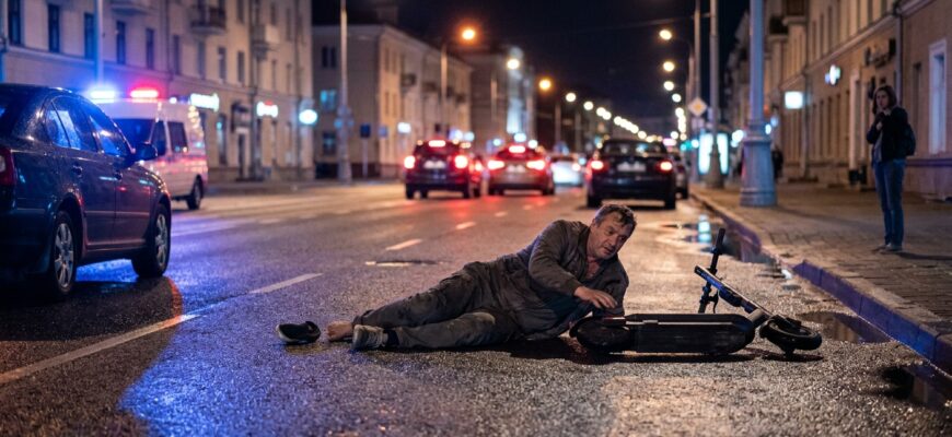 В центре Гомеля произошел инцидент с участием человека, управлявшего электросамокатом в состоянии алкогольного опьянения. Событие зафиксировано на улице