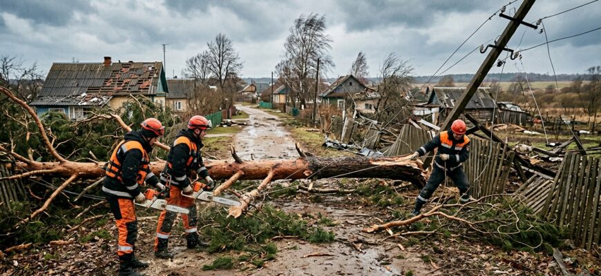 6 апреля сильный ветер создал многочисленные проблемы в четырех областях Беларуси. Спасатели Министерства по чрезвычайным ситуациям работали в Витебской