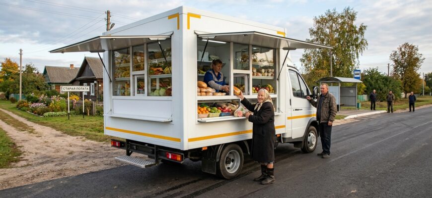С начала недели на маршруты Брагинского филиала областного потребительского общества вышел новый автомобильный магазин на базе шасси МАЗ.